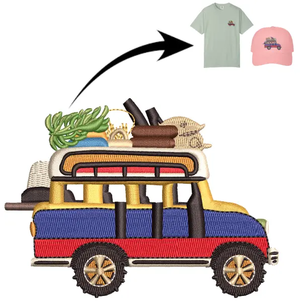 Le motif de broderie Jeep est disponible en 3 tailles, largeur / hauteur: 54X75 mm, 68X94mm, et 60X82mm. Vous pouvez télécharger instantanément les fichiers de conception Jeep.