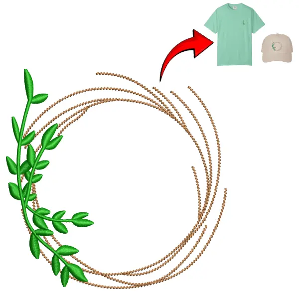 Leaves Wreath Frame Embroidery Design is available in 3 tailles, largeur / hauteur: 50X50 mm, 75X75 mm, and 100X100 mm. You can download the Leaves Wreath Frame design files instantly.