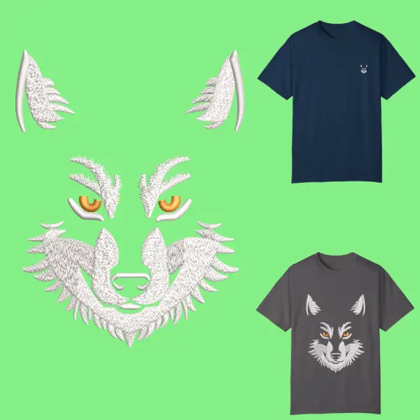 White Wolf Embroidery Design is available in 3 tailles, largeur / hauteur: 77×100 MM, 115X150 mm and 134X175 mm. You can download the White Wolf design files instantly.